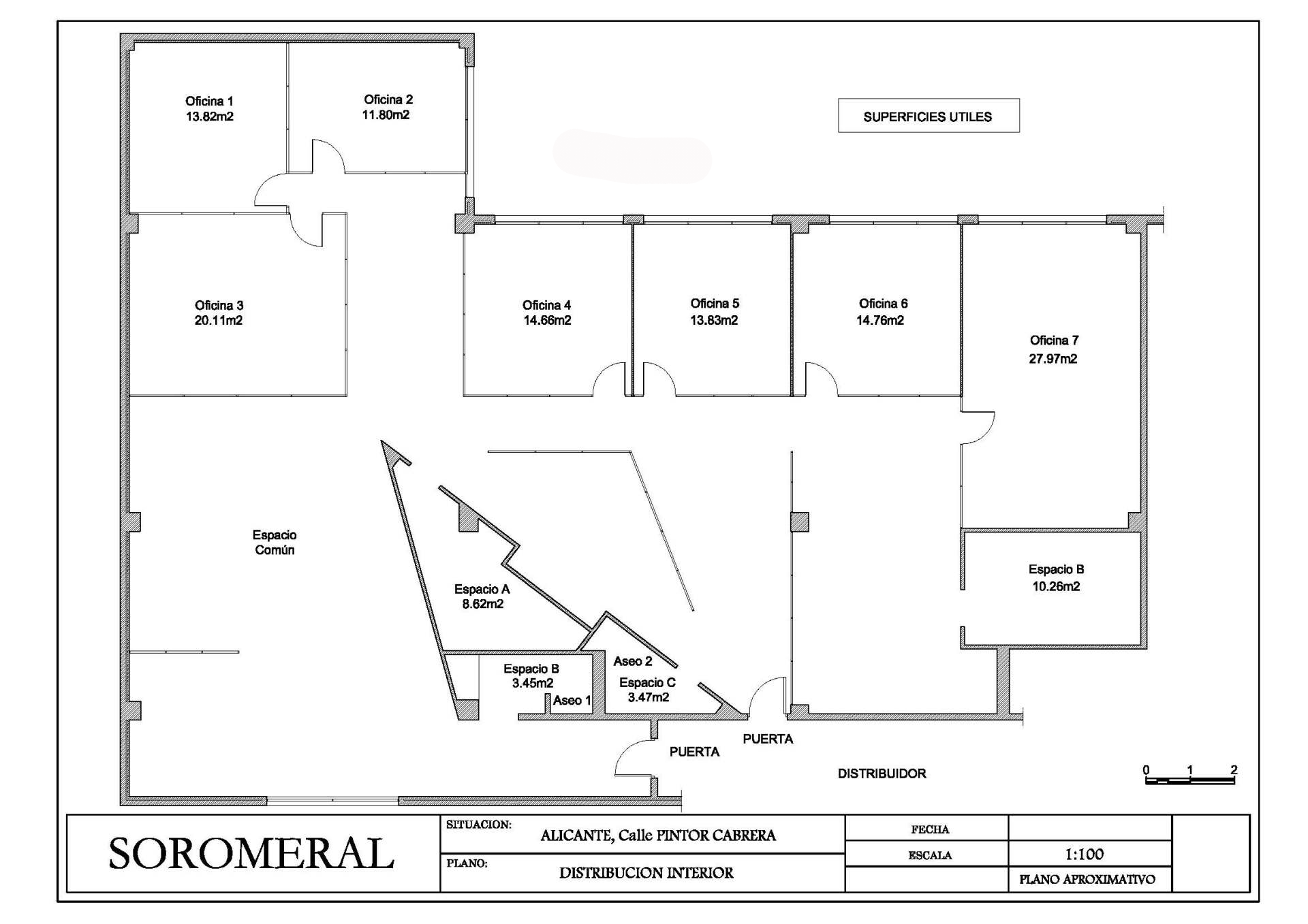 Preciosa oficina moderna de 330m2 situada en pleno centro de Alicante, junto a zonas comerciales y zonas de paso. C/Pintor Cabrera, una de las calles más céntricas de Alicante, junto a la Avenida de Maisonnave, la estación de tren, plaza de los Luceros y el Corte Inglés. Oficina compartimentada con tabiques de cristal creando ochos despachos amplios, dos cuartos de baño, almacén y zonas comunes. Pre instalación de aire centralizado y materiales de calidad. Falta adecuación final para la cual el propietario ayudaría con carencia inicial. Edificio con acceso para movilidad reducida, exclusivo de oficinas, dos ascensores, y conserje mañanas y tardes. Gastos de comunidad incluidos en el precio. IBI a cuenta del propietario. Trato directo con el propietario y sin comisiones de agencia.